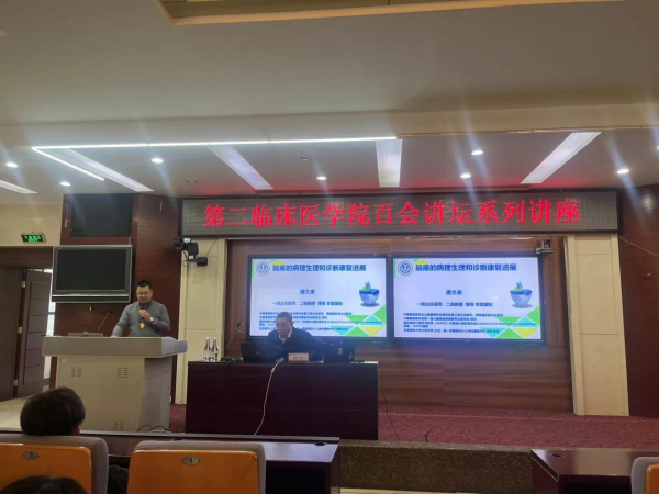 云中讯(通讯员 施英华)为进一步提高本科生科研水平,促使其更加深入地理解已掌握的专业知识,2024年3月15日,第二临床医学院在呈贡校区举行“百会讲堂”系列讲座。讲座邀请安徽医科大学教授唐久来、河南中医药大学教授马丙祥主讲,第二临床医学院副院长黄培冬主持,学院老师及中医康复学专业、康复治疗学专业学生共计100余人参加。