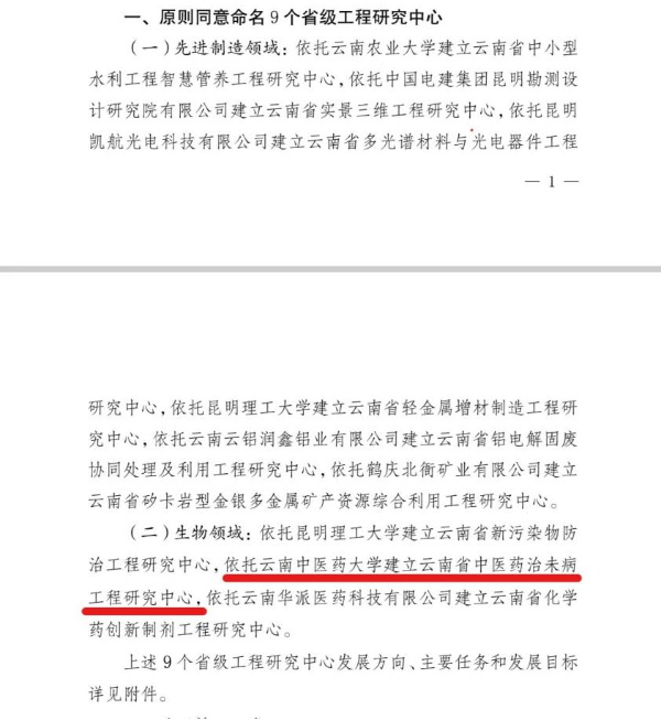 云中讯(科技处)近日,云南省发展和改革委员会公布了关于命名2023年(第十六批)省级工程研究中心的名单,今年全省共命名9个省级工程研究中心,其中我校牵头申报的“云南省中医药治未病工程研究中心”喜获立项。