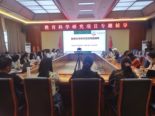 张继平教授结合自己多年的研究成果,从项目主持人及评审专家等不同视角,详细介绍了申报教育科学研究项目的方法和注意事项,以及开展高水平教育科学研究的思路,阐述了教育科学研究项目成果实现转化的目标途径。张教授还为我校即将申报云南省本科教育教学改革研究项目的12名教学管理人员及专任教师提供一对一辅导答疑,有针对性地就申报项目提出意见建议。