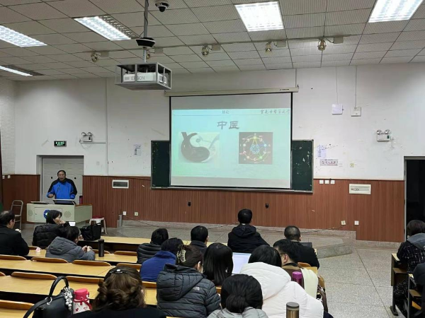 开班第一讲,由中医临床基础教研室盖沂超副教授作为主讲教师。他从生活中寻找案例,用诙谐幽默的语言让学员提高对中医的兴趣,深入浅出的介绍了《黄帝内经》《伤寒杂病论》等中医典籍,运用生活实例阐释何为“阴阳”,“症、证、病”之间的区别及“辨证论治”的精神内涵。