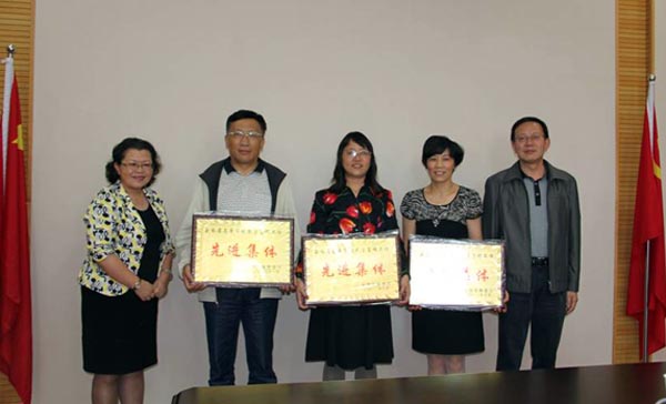 熊磊副院长和李世辉副院长为我院获得云南省高校教学管理工作先进集体的基础医学院、教务处、中药学院,获得先进个人的郭兆刚、苗晓玲、张丽教授;获得云南省高校教学名师的杨恩品、陈林兴教授,获得精品教材的《小儿推拿学》及《中医护理学基础》颁发了奖状和证书。