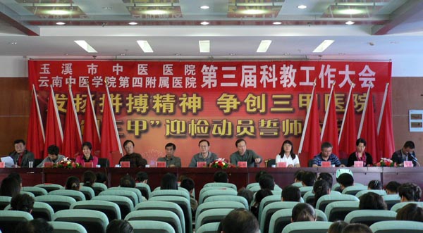 云中讯(通讯员 刘向东)2012年10月19日,应玉溪市中医医院暨我院第四附属医院邀请,受学校党委杨建军书记、李玛琳院长的委托,副院长李世辉教授、教务处处长陈林兴教授、科技处处长钱子刚教授、教学督导委员会主任郭兆刚教授及相关工作人员,出席了医院第三届科教工作大会。