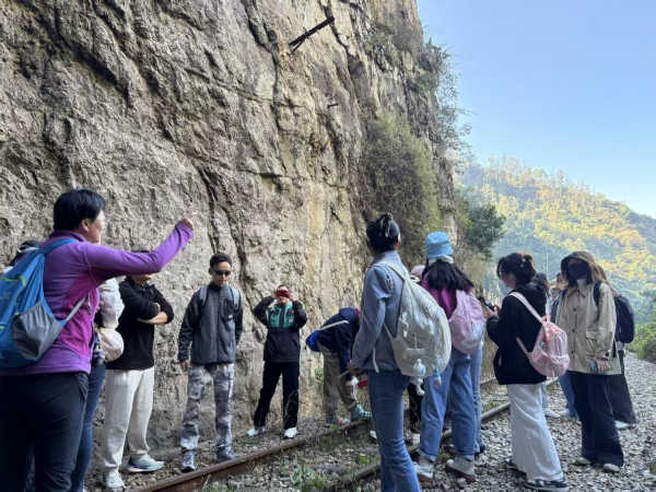 清晨八点半,同学们在呈贡校区和合楼前整装集结,统一乘车前往起点可保村火车站。抵达后,带队老师为大家深情讲述了滇越铁路的沧桑历史——从筑路劳工的血泪艰辛,到抗战时期铁路所承载的民族使命。一段段往事,一幕幕记忆,让同学们还未启程,已对这条“活的历史长廊”充满敬畏。