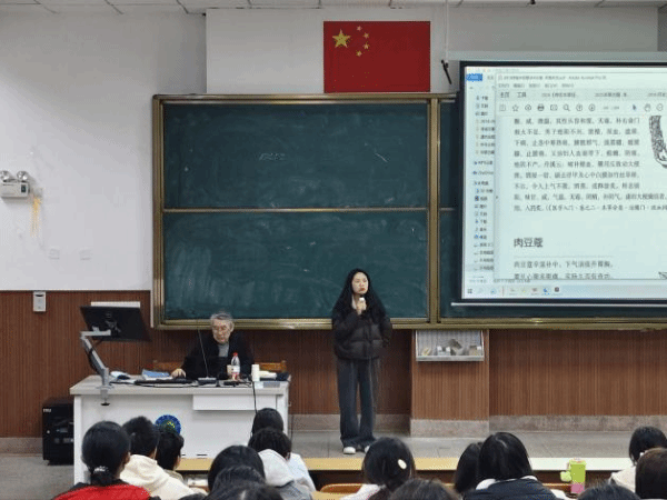 李教授认为,学习中医应打好理论基础,重视辩证思路,掌握本草药性,广览古籍经典,多读名医医案五个方面。讲座主要以掌握本草药性为重点,从不同经典著作中列举了一系列重点中药药材,并教授大家背诵药材的口诀,帮助大家找到简单易懂的学习背诵方法,学会读懂中医医案,从中汲取相关中医诊断知识,了解相关病症需使用的汤药及不同病人应使用的治则治法,不同病表现出的症状和体征,如何加强与患者间的沟通等知识,同学们也从中学习到了很多专业知识。