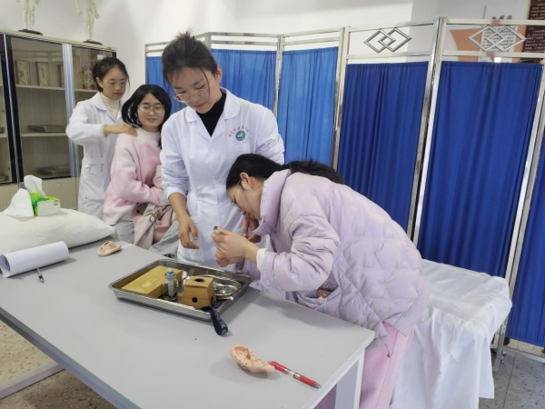 创新实施“11355”协同育人工程,以“提灯书院”一站式管理平台为中枢,整合13个多功能空间,打造“15分钟成长生态圈”。其中,双创空间已孵化“橘井草堂”“小郎中”等特色项目,中医护理体验馆开馆以来开展培训活动20余场次,参与培训、体验及志愿服务达2000余人次。学院特别成立由55名师生组成的功能型党支部,实施"护理+X"育人工程,开展“杏林天使”系列育人活动,形成“专业课堂-项目实践-社区服务”育人链。