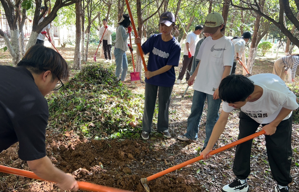 在场师生在学院草果栽培骨干的指导下,深入了解草果的种植方式和生长习性,根据实际情况对种植区域、种植数量、种植密度等进行了精心的规划设计,拿起锄头、铲子等工具,清除杂草、捡拾垃圾、平整土地,为草果的种植做好充分的准备。