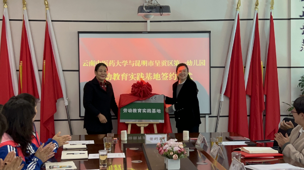 实践活动在校内外劳动实践基地同时展开。12日上午,2021级200余名师生到呈贡区第一幼儿园米兰园园区进行社会服务。副校长邰先桃、呈贡区副区长龙晶晶共同为学校劳动教育实践基地揭牌。同学们大手拉小手,用自己的专业知识带领小朋友们制作养生花茶和天然草本香囊,传授五禽戏传统功法,在展示专业所学的同时通过劳动的桥梁弘扬中医药文化的魅力。