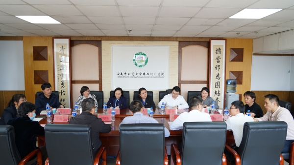 云中讯(通讯员 陈柏君)2025年4月18日,中组部、团中央赴滇博士服务团成员、云南省科技厅党组成员于宁,中组部、团中央赴滇博士服务团成员、云南省药监局党组成员康帅一行到云南中医药大学第二附属医院开展中医药科技创新工作专题调研。学院党委书记唐柱生、院长袁恺、副院长黄培冬,相关职能科室及青年科技工作者代表参加调研,调研会由党委书记唐柱生主持。