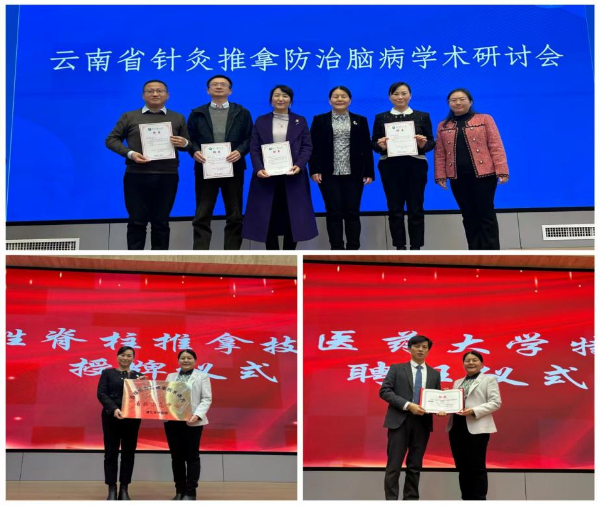研讨会同期举行了云南中医药大学特聘教授聘任仪式、选择性脊柱推拿技术体系省级示范中心授牌仪式以及创新创业指导老师聘任仪式等多项活动。