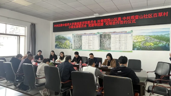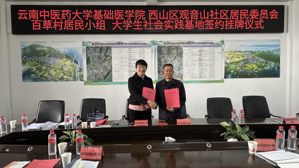 云中讯(基础医学院)为深入学习贯彻党的二十大和二十届二中、三中全会精神,通过党建引领,促进校地合作,推进乡村振兴,12月6日上午,基础医学院党委与昆明市西山区碧鸡街道观音山社区委员会百草村居民小组支部委员会签署共建合作协议,在百草村居民小组设立大学生社会实践基地。基础医学院党委书记孙雪萍、校团委书记浦仕通出席活动。