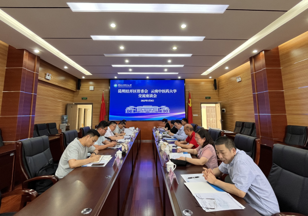 昆明经开区管委会工业和科技局、制度创新部、商务金融局,学校云南南药研究协同创新中心、办公室、对外合作交流处、中药学院、人文与管理学院、资产经营公司等部门(单位)相关负责人参加座谈。