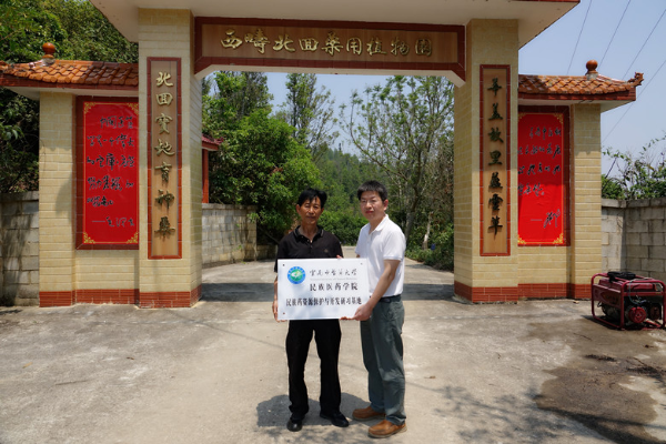 西畴县野生中药材资源迁地保护科普示范基地是“文山州专家工作站-徐福荣专家工作站”共建站点,徐福荣依靠自身的专业知识,推动了中药民族药资源保护与产业发展。在基地,徐福荣专家工作站负责人、西畴精神宣讲团成员程敦儒分享多年来种植三七的经验,重点阐述三七种植技术与三七资源开发现状等情况。程敦儒几十年如一日驻扎偏远深山耕耘五百多亩林地种植多年生三七,充分体现西畴人民实干苦干的优良品质,调研组深受教育。此外,调研过程中徐福荣强调应允许物种多样性的和谐共存、遵循自然生长规律,力求维持生态平衡,多年生三七能够健康生长与林中所有植被息息相关。本次调研收获颇多,双方均力求延伸三七产业链,推动三七产业高质量发展,期待未来能够搭建三七科研合作平台、共同努力使西畴林下三七种植成为独树一帜的品牌,贡献民族医药智慧。为搭建合作平台,双方合作共建“云南中医药大学民族医药学院民族药资源保护与开发研习基地”。