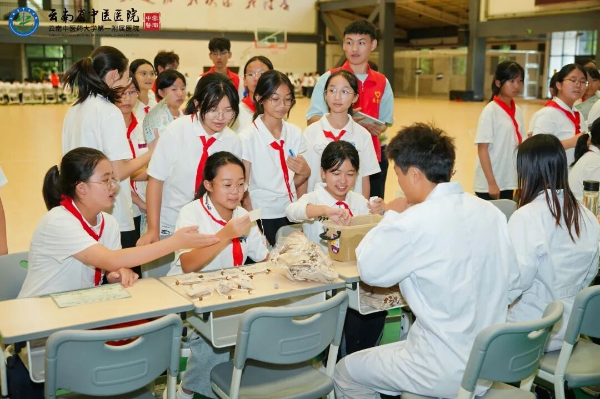 云中讯(第一临床医学院)2025年10月17日下午,借寒露时节养生契机,第一临床医学院的义诊专家与学生党员团员一行40余人,携手走进官渡区第一中学,举办了一场别开生面的“杏林薪火行·青春心光”中医药科普进校园活动。活动以“党建+中医药校园健康科普”为抓手,将中医药知识传承薪火与关爱青少年心理健康相结合,通过一场沉浸式游园嘉年华,为师生们带来了一份独特的“身心滋养礼”。