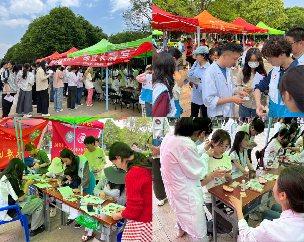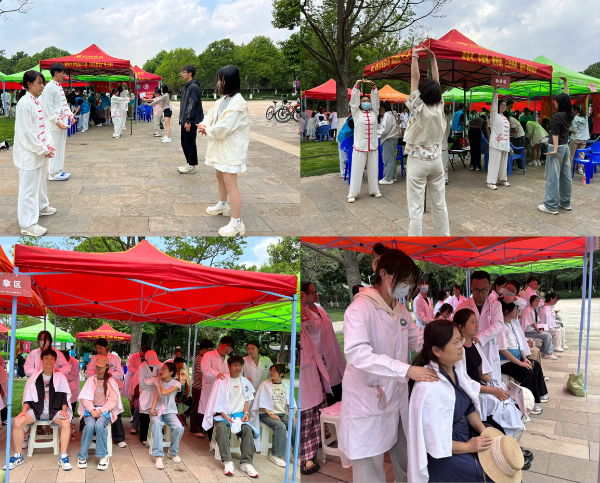 本次活动融合中医诊疗、养生体验、文化互动于一体,吸引众多师生参与,现场氛围热烈。活动现场设置了推拿、艾灸、耳穴贴、量血压、脉诊、功法教学六大服务区。推拿区前排起长队,针对师生常见的肩颈劳损、腰椎不适等问题,志愿者们手法娴熟地开展推拿按摩,通经活络;艾灸、耳穴贴体验则让师生直观感受到中医“小穴位,大健康”的独特魅力。在脉诊区,志愿者通过“望闻问切”为师生辨证论治,解答健康问题;“八段锦”“太极拳”等传统养生功法吸引众多师生跟随学习。此次活动,志愿服务团队还创新设计并开展了“健康集章卡”活动,师生通过参与中医药有关的趣味小游戏收集印章,兑换惊喜礼品,在趣味互动中了解中医“治未病”理念。