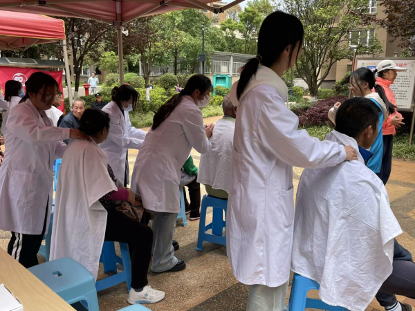 本次活动共设置五大服务专区,26名志愿者各施所长。在中医推拿区,13名志愿者运用娴熟的手法为居民缓解颈肩腰腿疼痛;耳穴贴组的3名志愿者为失眠、头痛患者进行耳穴调理;艾灸区的4名志愿者通过温灸疗法,帮助居民驱寒除湿、通经活络;血压测量组的志愿者不仅细致地记录数据,更耐心讲解日常保健要点,注意日常健康管理;功法展示区的志愿者们则带领居民习练八段锦,现场教学传统养生功法,感兴趣的社区居民进行了跟练。