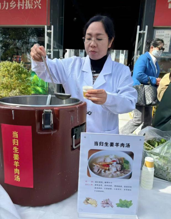 在中药药膳及中医养生饮品展示区也吸引了众多村民的目光。学院师生精心准备的解郁顺气茴香粥、当归生姜羊肉汤、养阴清肺排骨汤、十全大补土鸡汤、元气满满养生奶茶等多种具有养生功效的药膳和饮品,不仅让村民们品尝到了美味,还让他们了解到中药的食疗作用。许多村民纷纷表示,要将这些养生知识带回家,应用到日常生活中,以改善自己和家人的健康状况。