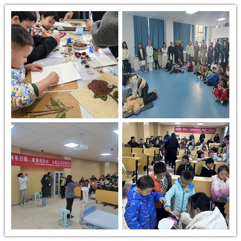 在护理学院工作人员的热情引导下,小朋友们首先参观了学院实验教学中心。实验室里陈列着各种传统中医器材,如针灸针、拔罐器、刮痧板及各种中医药药材模型,工作人员耐心地为小朋友们讲解了这些器具的用途和中医护理操作的基本原理,并让小朋友现场体验了心肺复苏应急救护操作;护理学院学生会同学通过角色扮演,向小朋友们展示了如何正确刷牙、用眼卫生知识、如何拨打110、120、119等救援电话,让小朋友了解日常生活保健知识及初步急救技能。
