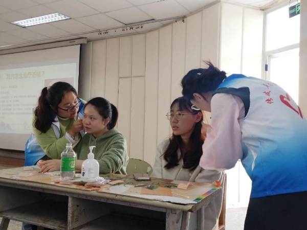 云中讯(通讯员 侯婷)近日,基础医学院大学生志愿服务团前往昆明市西山区永昌小学开展中医药文化“进校园”活动,志愿活动以“耳穴呵护,点亮‘睛’彩”为主题,向小学生们普及中医耳穴保健知识,增强爱眼意识,培养健康的用眼习惯,为孩子们的健康成长添砖加瓦。活动由基础医学院朱晓松老师带队,17名志愿者同学参加。