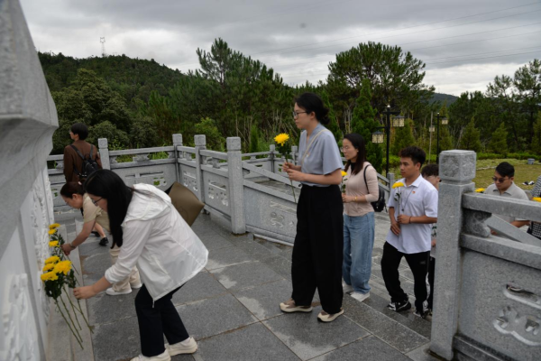 7月21日下午,“三下乡”服务团队一行赴永平县滇缅公路纪念馆、龙坡烈士陵园红色基地参观学习。在滇缅公路纪念馆,认真观看滇缅公路修建历史过程纪录片,深入了解抗日战争期间,云南各族人民在这条“抗战输血管”上所展现出的不屈不挠的抗争精神和爱国主义精神。随后,参观龙坡烈士陵园,向革命先烈献花,感悟革命先烈为党的革命事业英勇献身的伟大精神,进一步激发广大师生的爱国情、强国志、报国行。