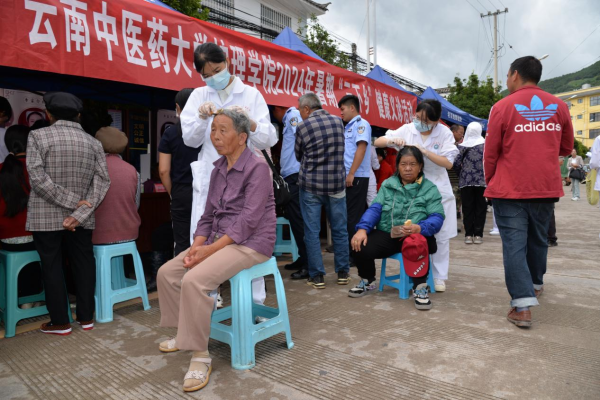 7月22日上午,“三下乡”服务团队一行赴永平县龙街镇卫生院开展义诊活动。启动仪式上,祁苑红指出,“三下乡”社会实践活动是党和国家推进乡村振兴、推动文化、科技、卫生事业高质量发展的一项重要举措,不仅是知识的普及、文化的传播,更是健康服务的延伸和温暖人心的行动,希望同学们能够珍惜这次机会,深入基层、了解民情,将所见所闻、所思所感转化为学习的动力,为未来的中医药事业贡献自己的力量,让青春为中国式现代化挺膺担当。随后,专家、师生团队开展义诊活动,专家们用自己的专业知识和技能,为前来就诊的居民提供了贴心的医疗服务,学生志愿者们现场为居民开展健康监测、耳穴埋籽、刮痧、穴位按摩、傣医拖擦疗法等中医民族医护理适宜技术操作服务。同时为问诊群众发放膏药、紫连膏等中医药制剂,围绕基层群众对中医护理适宜技术的了解及使用情况等方面内容发放问卷200余份。