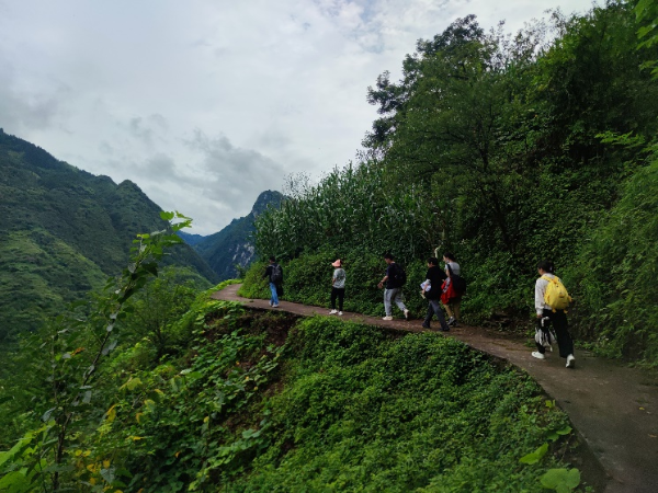 11日9点,志愿服务队员从昭通市出发,通过乘车和步行的方式,在四个多小时后顺利到达镇雄县盐源镇温水村志愿服务点。