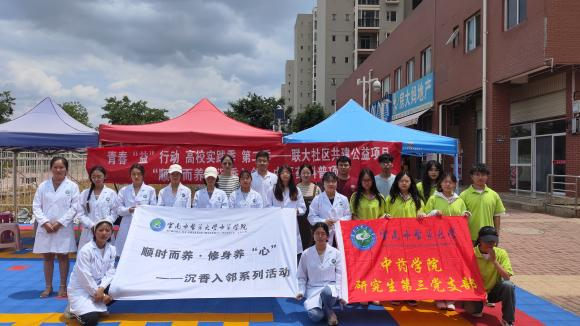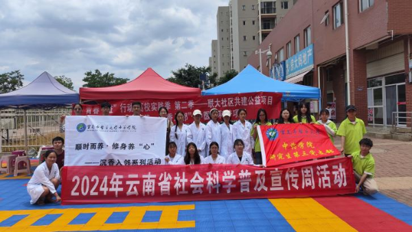 云中讯(通讯员 朱哲)2024年5月18日,云南中医药大学中药学院“顺时而养·沉香入邻”中医药科普项目团队暨“沉香”中医药科普党员志愿服务团,在呈贡区天润康园南区小广场开展“夏来养心—养心之道”志愿服务系列活动,旨在预防夏季疾病的发生,普及健康知识,传播健康理念,提高社区居民中医药养生保健素养。