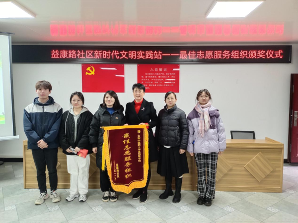 云中讯 (通讯员 赵鋆)12月22日,昆明市西山区益康路社区举行“益康路社区新时代文明实践站最佳志愿服务组织颁奖仪式”,向我校基础医学院“智慧中医”大学生志愿服务实践团赠送“最佳志愿服务组织”锦旗。学院党委书记孙雪萍,“智慧中医”大学生志愿服务实践团相关代表参加锦旗赠送仪式。