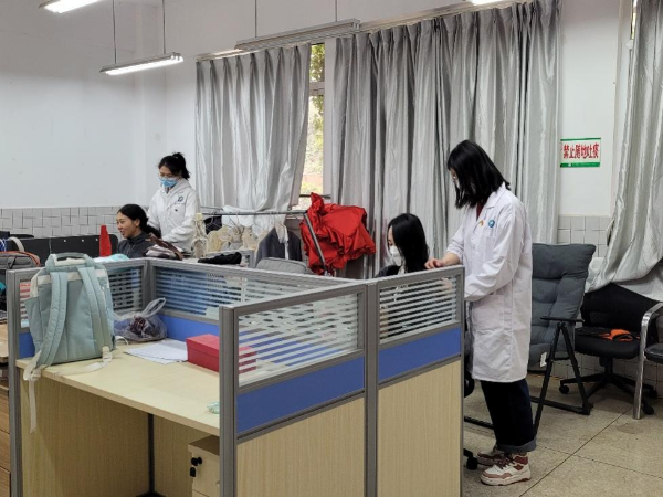 为缓解学校教职工教学疲劳与压力,2020级针灸推拿志愿队到办公室区域让老师们体验了推拿等诊疗服务,缓解了老师们因长期伏案导致的颈椎等不适症状,获得一致好评。