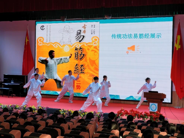 2022级中医康复班宣讲团以中医的三个特色治疗手段——药食同源、传统功法和针灸推拿为要点,向天骄校区320余名师生介绍了中医药传统文化、现场开展了《云中养生易筋经》教学,引导师生积极锻炼,丰富日常生活,形成健康生活习惯。台下同学们与主讲人多次精彩互动,现场氛围热烈、融洽。
