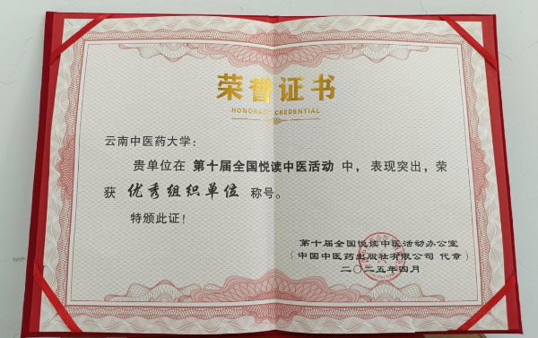 我校在第十届全国悦读中医活动中获“优秀组织单位”奖,图书馆常傲冰老师获“优秀指导老师”称号,校团委王开舒老师获“2024全国中医药阅读推广人”称号。