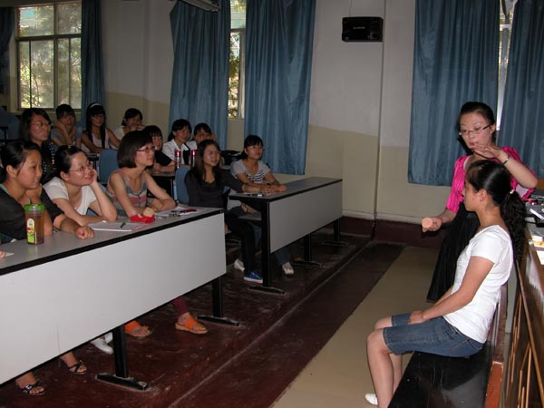 王进进老师从如何照好毕业照讲起,介绍了如何穿戴学士服、学士帽,并着重讲解了在不同场合下,如何穿着和化妆,并进行了现场示范。整个讲座中,同学们积极参与,不时送上热烈的掌声。