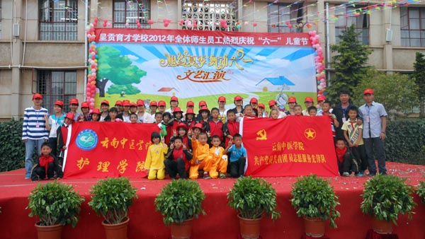 此次活动得到了育才小学全体师生支持,我校志愿者受到了以赵忠瑞校长为代表的社区相关负责人的热情接待。儿童节当天,我院志愿者给所有的小演员们(将近400个小朋友)化妆、搭建舞台、捐书、表演节目等等。在活动中,各志愿者热情高涨,耐心认真对待每一个工作,用他们的真心来与可爱的孩子们交流,每一个志愿者都将自己最真挚的热情投入到此次活动。在下午 “相约夏季,舞动六一”为主题的文艺汇演中,热闹非凡,众多精彩节目层出不穷。其中,在进行到我院的赠书仪式时,由护理学院志愿者代表发言,表达了对育才学校的希冀和对小朋友节日的祝福。随后我院志愿者又表演了由寓言故事改编的小品,将汇演的气氛推到了高潮。志愿者们美妙的歌曲,精彩的舞蹈构成了汇演最美的篇幅。汇演结束后,育才小学校领导给了我院党团员志愿者们亲切的慰问、充分的肯定,并表达了最诚挚的感谢。