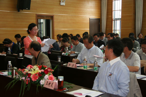 竞岗陈述会评委、学院副院长陆炜諠同志向竞岗者提问