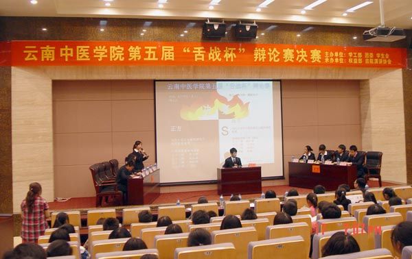 云中讯(院团委)5月17日晚,由团委、学生会主办的云南中医学院第五届“舌战杯”辩论赛在呈贡校区图书馆一楼信息报告厅举行。院团委、党办、研究生部的老师担任此次比赛评委,党委副书记王树发出席了本次比赛,广大同学积极踊跃参与,全场座无虚席。