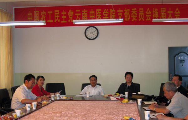 云中讯(统战部) 2011年5月11日下午3点,中国农工民主党云南中医学院支部委员会成立大会在云南中医学院白塔校区召开。农工党中央副主席、云南省政协副主席、农工党云南省委主委陈勋儒同志,云南省政协常委、农工党云南省委副主委张宽寿同志及学院党委王树发副书记和学院组织部、统战部部长卞瑶同志到会指导,云南中医学院全体农工党成员参加了本次会议。