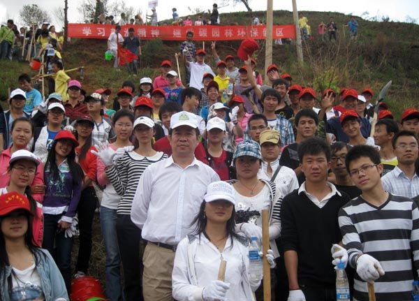 云中讯(学工部) 为加强城乡园林绿化与生态建设,按照市委、市政府关于《关于进一步加强城乡园林绿化及生态建设的意见》的文件精神,5月7日上午9时,院党委副书记王翠岗、学工部负责人、辅导员、班主任以及100名学生代表,参加了在呈贡市级行政会议中心举行的驻呈贡新区高校10万人义务植树造林活动的启动仪式及会后的现场植树造林活动。