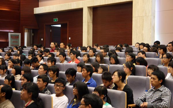 徐德诗教授以刚刚过去不久的日本九级特大地震开篇,总结回顾了给人类造成较大灾难的地震灾害史,尤其是全面介绍了自1900年以来,全世界8.0级以上的地震灾害史。充分运用图像画面、视频音频、文字图片、表格数据等,全面展示了地震给人类造成的巨大生命伤害、心灵创伤、经济损失,以及人类自强不息,与地震灾害抗争救灾波澜壮阔的历史。循序渐进地就地质结构、地球板块、地壳运动、天文气象以及海啸、火山喷发、核辐射等有关与地震紧密关联,可能对人类造成巨大灾难的相关知识深入讲解。以“一个意识(防灾意识:忧患意识、应急救灾意识)、两个知道(地震感觉判断,避震要领)、三个行动(疏散演习、应急物品、紧急救援志愿者)”为讲座主线,着重向同学们讲解传达抗震救灾、应急救援、生命关爱的理念、知识、技能。最后徐教授以智利人抗震救灾的名言“没人能够控制自然之母,但是做好应急措施,我们可以将损失最小化”升华报告主旨,结束报告。