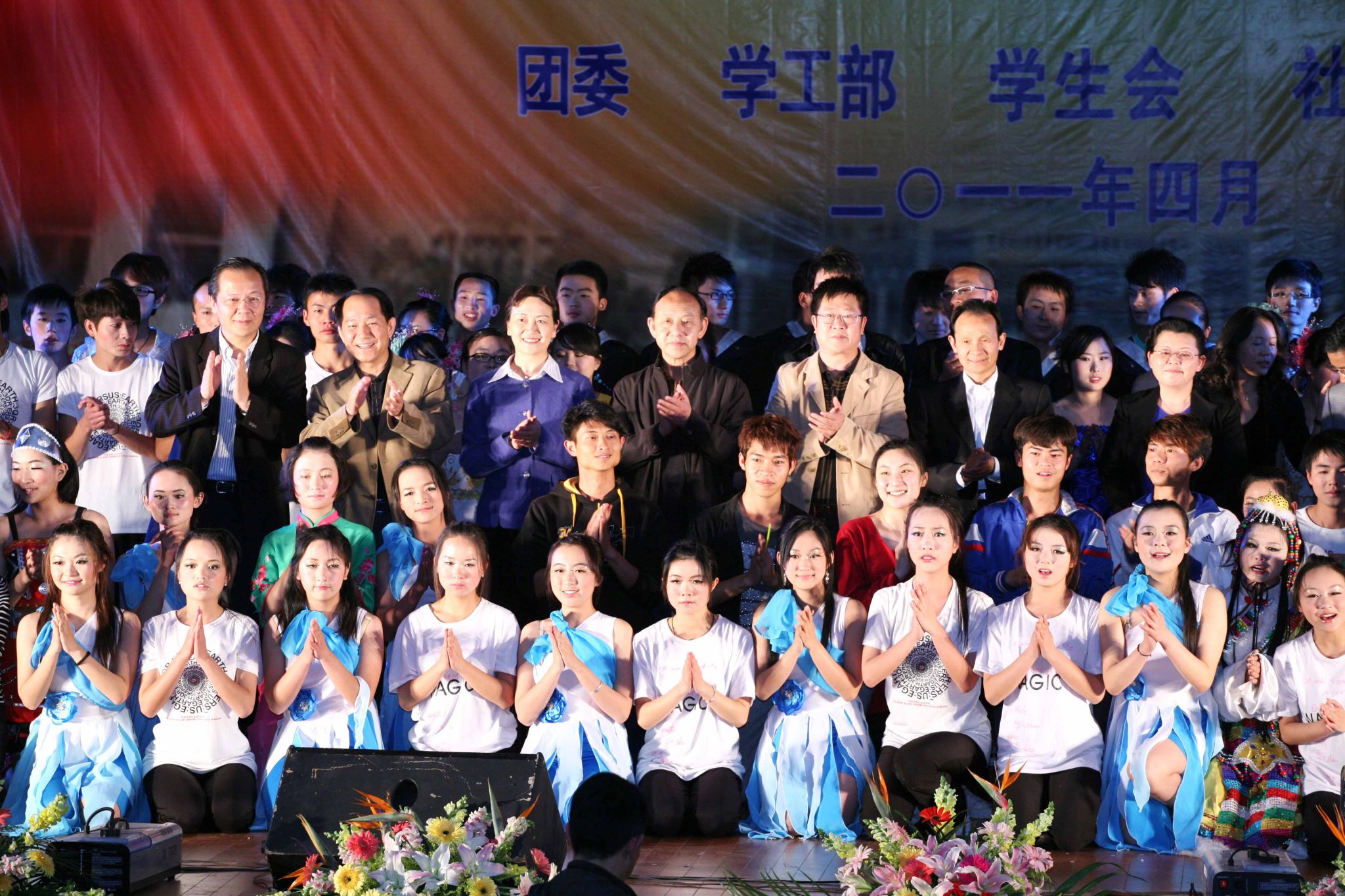 云中讯 (团委) 2011年4月26日晚7:00,由团委、学工部、学生会、社团联合会主办的“庆祝建党90周年‘迎五四?扬青春’文艺晚会”在我校兰茂堂举行。