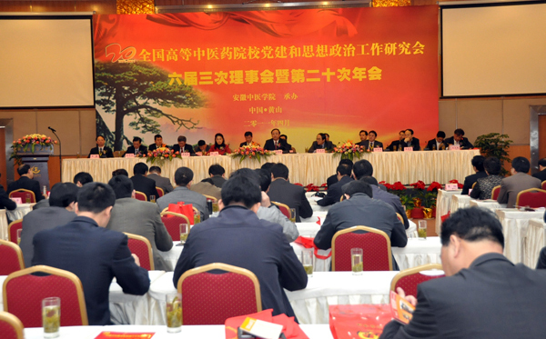 云中讯(通讯员 欧阳继林)2011年4月18日,学院党委杨建军书记应邀参加在安徽省黄山市召开的全国高等中医药院校党建和思想政治工作研究会六届三次理事会暨第二十次年会。卫生部副部长、国家中医药管理局局长王国强,全国中医药高等教育学理事长洪净,教育部思政司副司长王光彦出席会议并作重要讲话。全国28所中医药院校代表参加了会议。