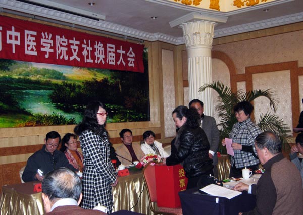 会上,经全体会员投票选举,产生了新一届九三学社云南中医学院支社委员会:第一附属医院余泽云同志当选为支社主委,杨柏枫、孙丽萍当选为支社副主委,汤小虎、黄信源二同志当选为支社委员。