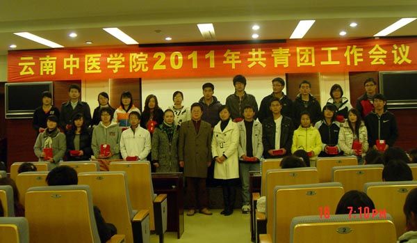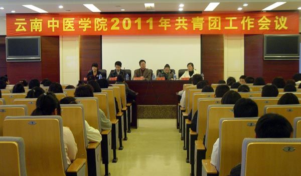 云中讯(院团委 丁梅君))3月16日下午5:30,云南中医学院2011年共青团工作会议在翰墨楼二楼报告厅隆重举行。学院党委王树发副书记高度重视,并亲自出席讲话。学院团委书记王燕,副书记吕桢、侯宾,各分团委书记、副书记、学生会主席,以及院团委、学生会、社团联合会全体团学干部共计180余人参加会议。会议由院团委副书记吕桢主持。