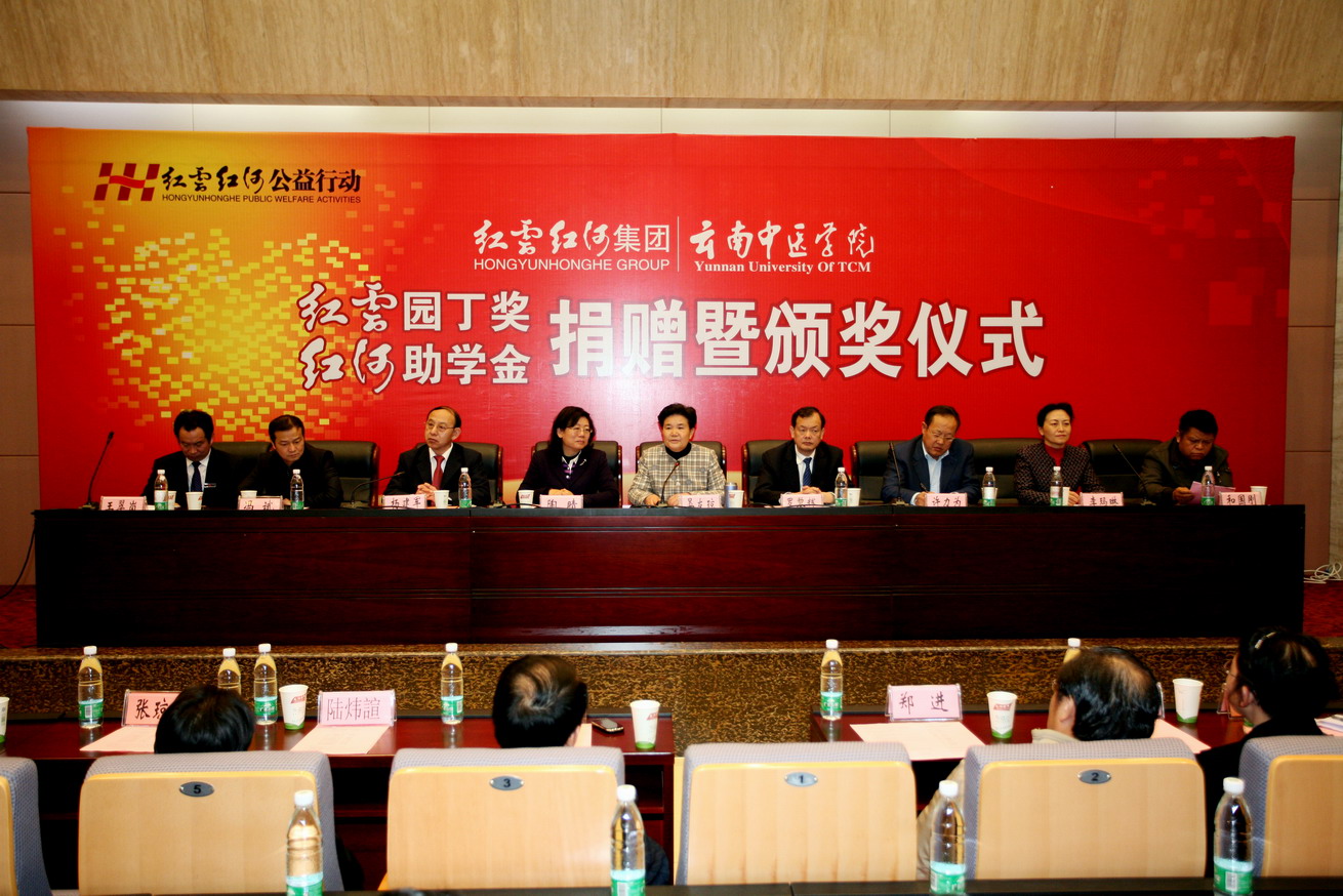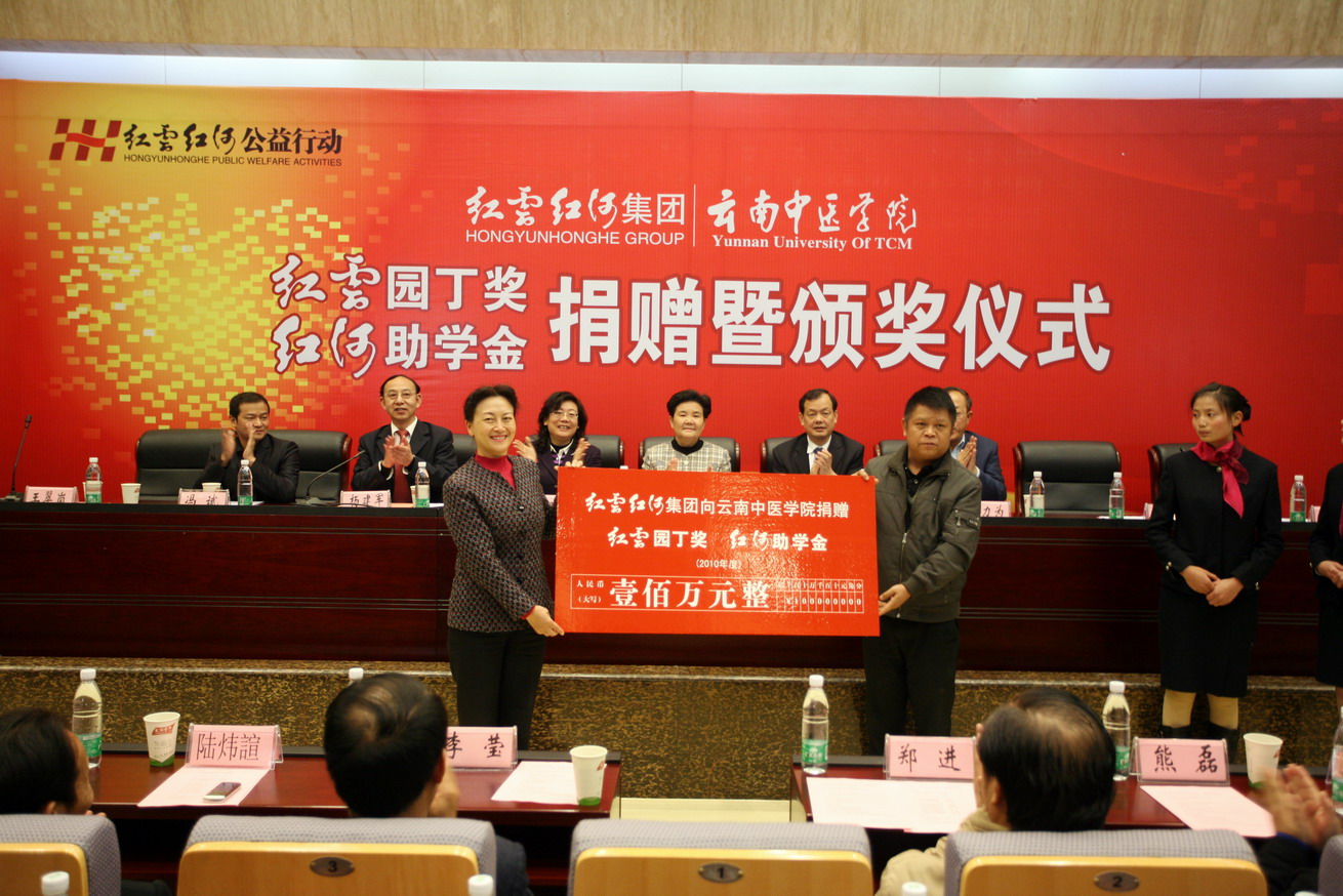 云中讯(新闻中心)2010年12月31日上午11:00,云南红云红河集团.云南中医学院2010年度“红云园丁奖、红河助学金”捐赠暨颁奖仪式在我院呈贡校区翰墨楼一楼报告厅隆重举行。