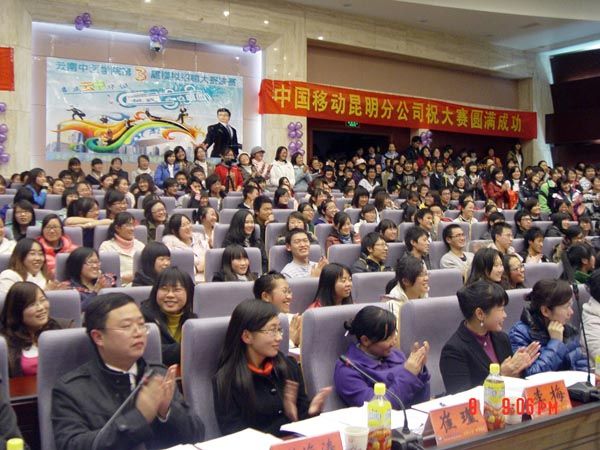 云中讯(通讯员 兰顺有)“喜庆云中华诞,挑战人生职场”。12月9日晚,由学生处就业指导中心、大学生就业协会策划组织的云南中医学院第三届模拟招聘大赛决赛在呈贡校庆翰墨楼一楼报告厅空前开幕。原本容纳300人的报告厅先后挤满了500余人观看大赛,会场站无虚席。
