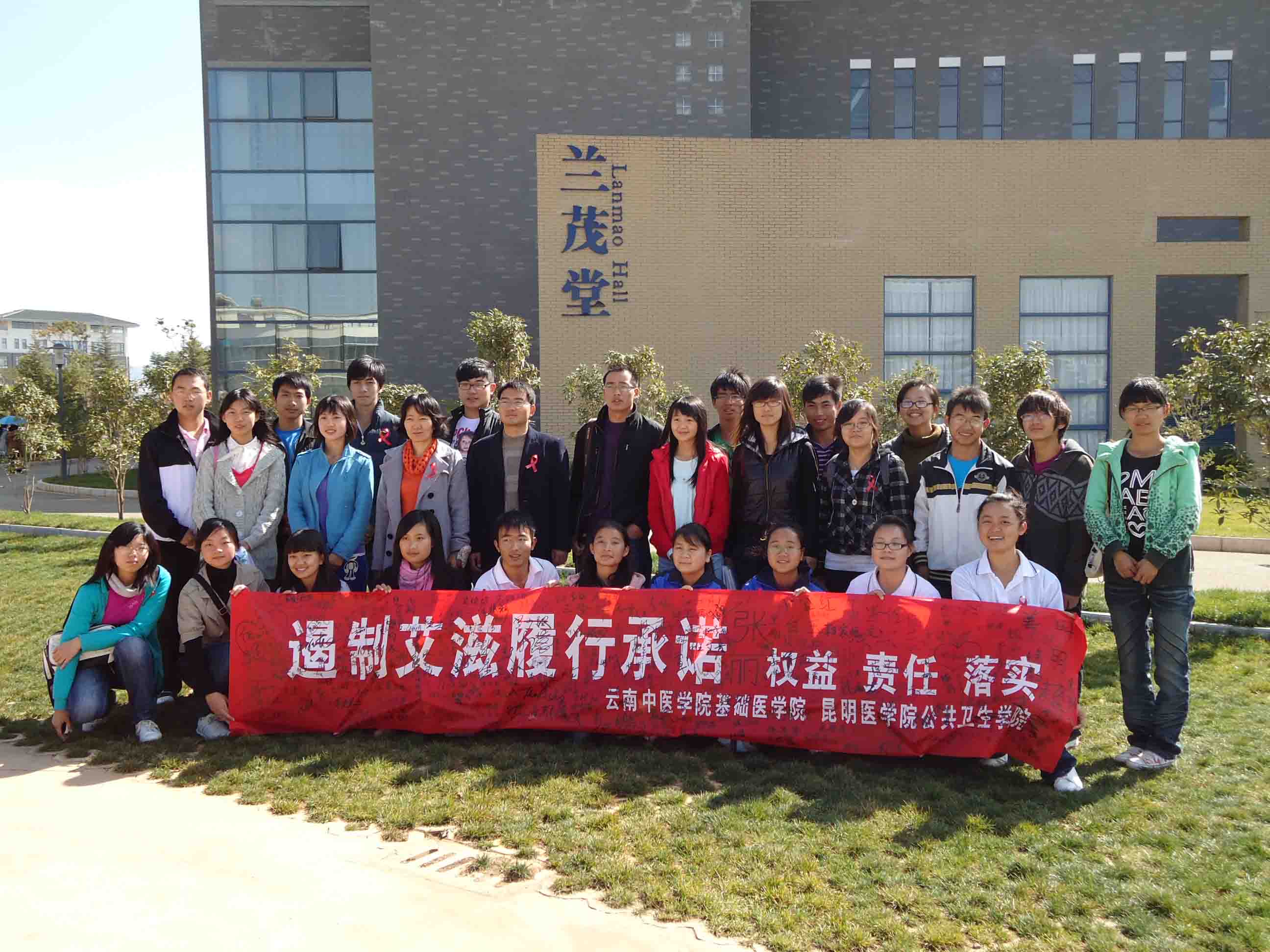 云中讯(基础医学院团委学生会)2010年12月1日,第23个“世界艾滋病日”来临之际,云中基础医学院团委与昆医公共卫生学院团委合作,围绕“遏制艾滋,履行承诺”的主题,开展了丰富的宣传活动,这是我们两校分团委之间的首次合作。