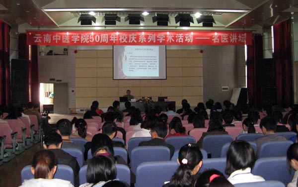 讲座由学院科技处李旋珠主任医师主持,省中医学会副会长兼秘书长、《中国中医药报》云南记者站站长郭元靖同志、医院叶建州副院长等领导及相关部门负责人、部分医院职工、研究生、本科生约300人参加了此次讲座。