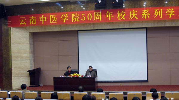 云中讯(科技处、基础医学院) 2010年11月10日正值校庆倒计时的第一天,云南省药品食品监督管理局副局长陈洪教授应邀到我院作“中医药产业开发与人才培养的昨天、今天和明天”的学术报告。讲座由熊磊副院长主持,基础医学院全体教师、中药学院部分师生参加听讲。