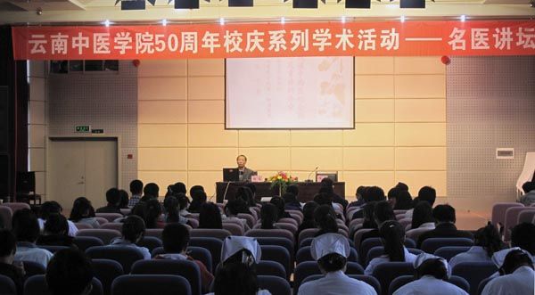 云中讯(临床医学院、科技处) 2010年10月27日下午云南中医学院50周年校庆系列学术活动“名医讲坛”第三讲在第一附属医院进行,主讲嘉宾为云南省名中医赵淳主任医师,讲座题目是“浅谈中西医结合救治危重病的体会”。讲座由学院科技处周青处长主持,医院叶建州副院长等领导及相关部门负责人参加了此次讲座。