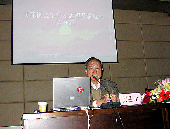 讲座由熊磊副院长主持,学院科技处、临床医学院等相关部门负责人参加了活动。熊副院长简短介绍了吴生元教授的基本情况及其取得的学术成果。吴生元教授秉承家学,钻研经典,学验俱丰,著作等身,医术精湛,活人无数,整理编写了吴佩衡许多学术文稿,让吴氏学术经验得以流传后世。研制的“风寒感冒冲剂”、“风热感冒冲剂”、“蠲痹冲剂”在云南家喻户晓。由于吴老师在秉承先贤,光大中医,培养后学方面做出的突出贡献,国务院授予老师有突出贡献的专业技术人员荣誉奖励,享受省政府特殊津贴,1996年被评为云南省名中医、全国名老中医学术继承导师,2007年荣获全国首届中医药传承特别贡献奖。