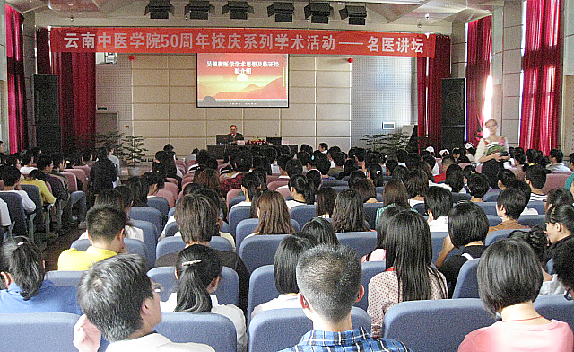 云中讯(科技处)20101013下午,云南中医学院50周年校庆系列学术活动名医讲坛在第一附属医院开讲,主讲嘉宾为云南省名中医吴生元教授,讲座题目是“吴佩衡医学学术思想及临证经验介绍