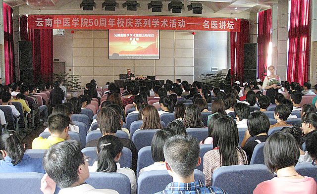 云中讯(科技处)2010年10月13日下午,云南中医学院50周年校庆系列学术活动—名医讲坛在第一附属医院开讲,主讲嘉宾为云南省名中医吴生元教授,讲座题目是“吴佩衡医学学术思想及临证经验介绍”。
